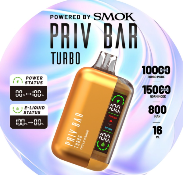 Con batería recargable de 800 mAh y 16 ml de e-líquido con 5% de nicotina, el dispositivo ofrece hasta 15,000 caladas en modo normal y hasta 10,000 en modo turbo. Su pantalla LED proporciona información clara sobre el nivel de batería, modo activo y cantidad de líquido restante para un uso práctico y controlado.